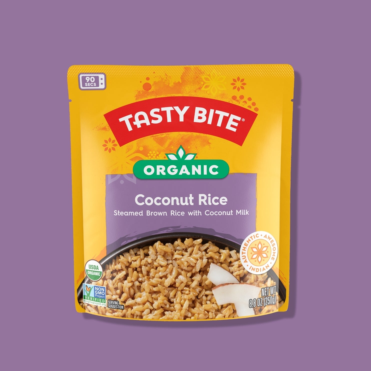 Our organic brown rice is gently steamed with rich, creamy coconut milk to create the perfect coconut rice - fluffy, fragrant, and full of flavor. This ready to eat pouch is a delicious twist on a kitchen staple, ideal for pairing with curries, grilled meats, or roasted vegetables. Enjoy the subtly sweet, tropical flavor of Tasty Bite coconut rice in just 90 seconds, no prep required. Whether you are making a weeknight dinner or a special weekend feast, this ready-to-eat coconut rice brings warm, comforting flavor to every plate, straight from the pouch to your table.
