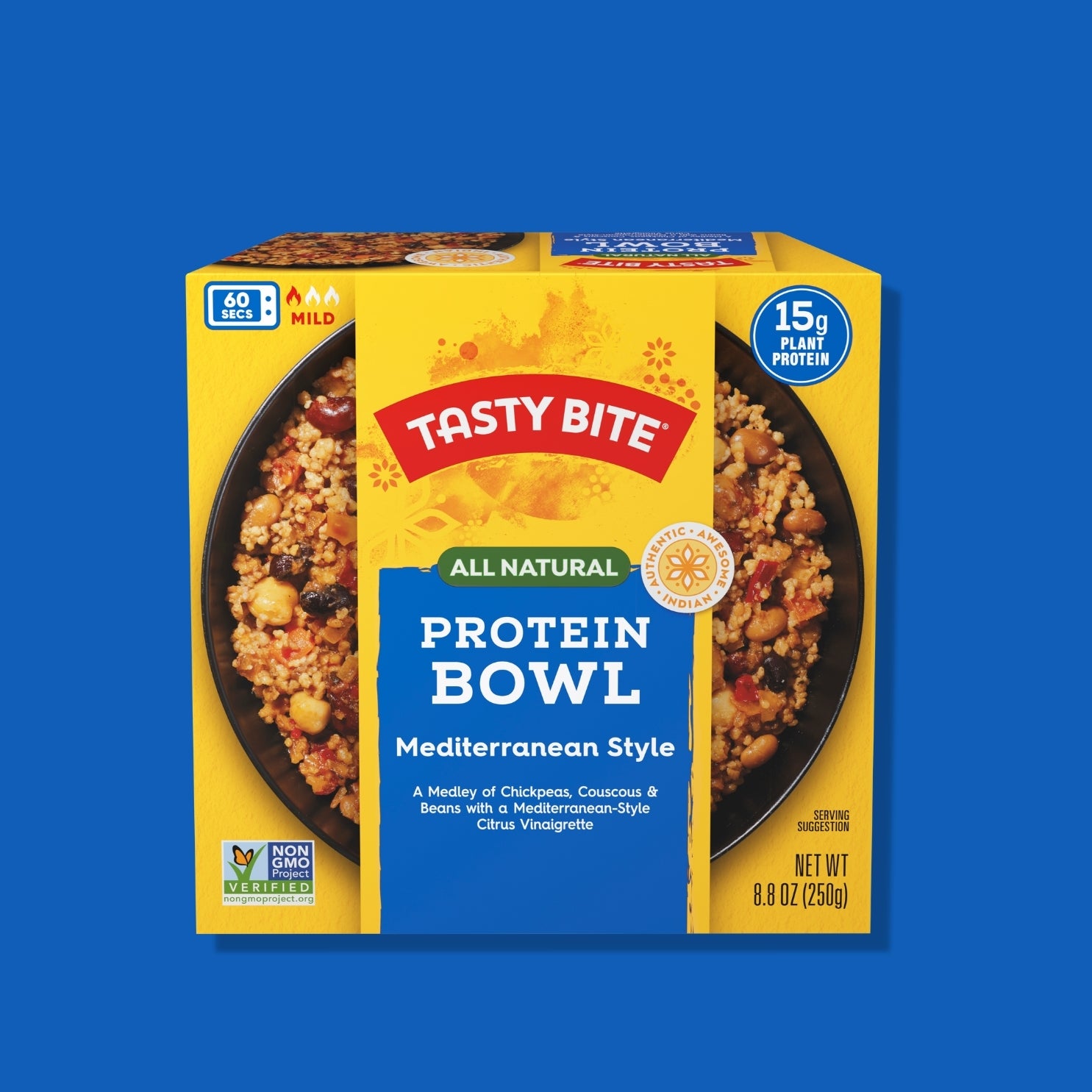 Our Mediterranean Protein Bowl combines bright, zesty flavors with wholesome ingredients for a quick, satisfying meal. A medley of chickpeas and beans is paired with fluffy couscous, sweet carrots, and red bell pepper, then finished with a citrus basil vinaigrette for freshness in every bite. Packed with plant-based protein and vibrant vegetables, this protein bowl makes a perfect healthy lunch, hearty side, or portable meal on-the-go. Enjoy it warm or straight from the package in just 60 seconds. With balanced flavor and nutrition, it is one of our most versatile plant-based meals.
