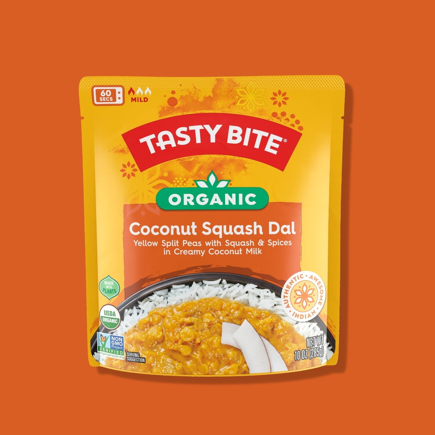 Our organic coconut squash dal is a comforting blend of yellow lentils, tender squash, and aromatic spices, all swirled into a creamy coconut sauce. A hint of natural sweetness from the squash balances the earthy warmth of cumin, turmeric, and garlic for a dish that’s both nourishing and satisfying. This Tasty Bite dal delivers a rich, layered flavor that feels indulgent yet wholesome, making it a perfect choice for both seasoned dal lovers and those discovering it for the first time. Ready in just 60 seconds, this vegan instant meal is delicious over rice or enjoyed with warm naan.